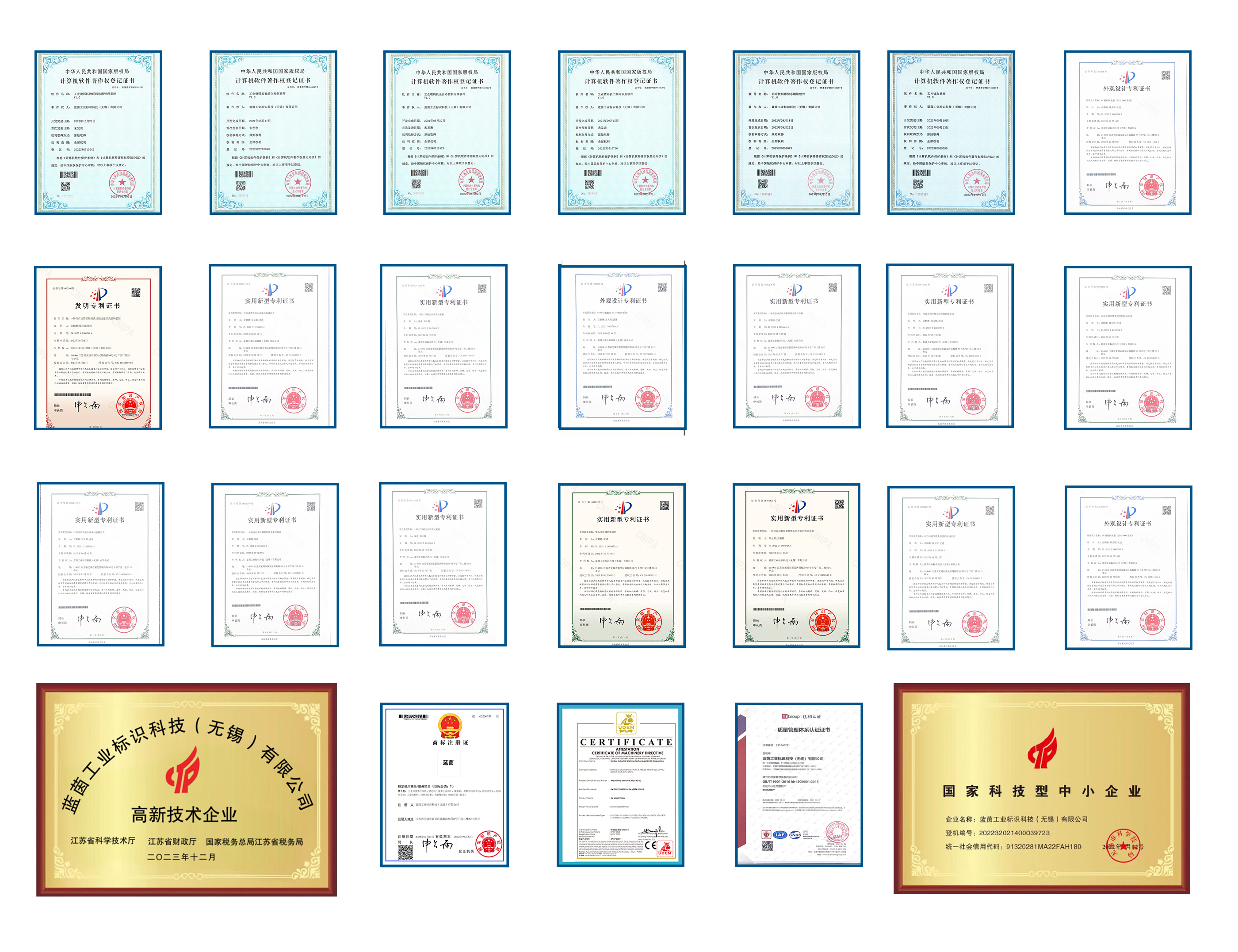 藍茵堅持“強”研發策略,持續不斷引進行業先進人才,新技術探索創新,研發團隊具有出眾的設計研發能力,憑借豐富的行業經驗和自主研發創新,為各行業帶來更環保、高效的工業噴墨、噴碼解決方案,是市場為數不多,具備從圖像處理,打印驅動,墨路設計,波形開發,墨水開發,全棧能力的噴墨打印廠商。藍茵各系列噴碼設備獲得了CE認證,現已累計獲得各類專利、軟件著作權幾十件,并榮獲“國家中小型科技企業”稱號,2024年獲“國家高新技術企業認定”。推動噴墨技術在工業及工藝中的充分應用,構筑全球前沿噴墨技術與流體平臺,是藍茵LIONTEC研發團隊不懈追求。