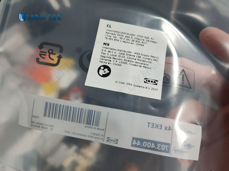 這是宜家家居通過藍(lán)茵UV噴碼機(jī)在PE塑料包裝袋圖案標(biāo)識、條碼、文本、logo的高清晰打標(biāo)打碼