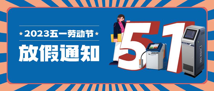 根據《國務院辦公廳關于2023年部分節假日安排的通知》要求,現將藍茵噴碼機廠家2023年五一放假安排通知如下: 放假期間我司無人值班,為保證過節期間不影響各公司業務,真誠提醒您注意以下事項:
