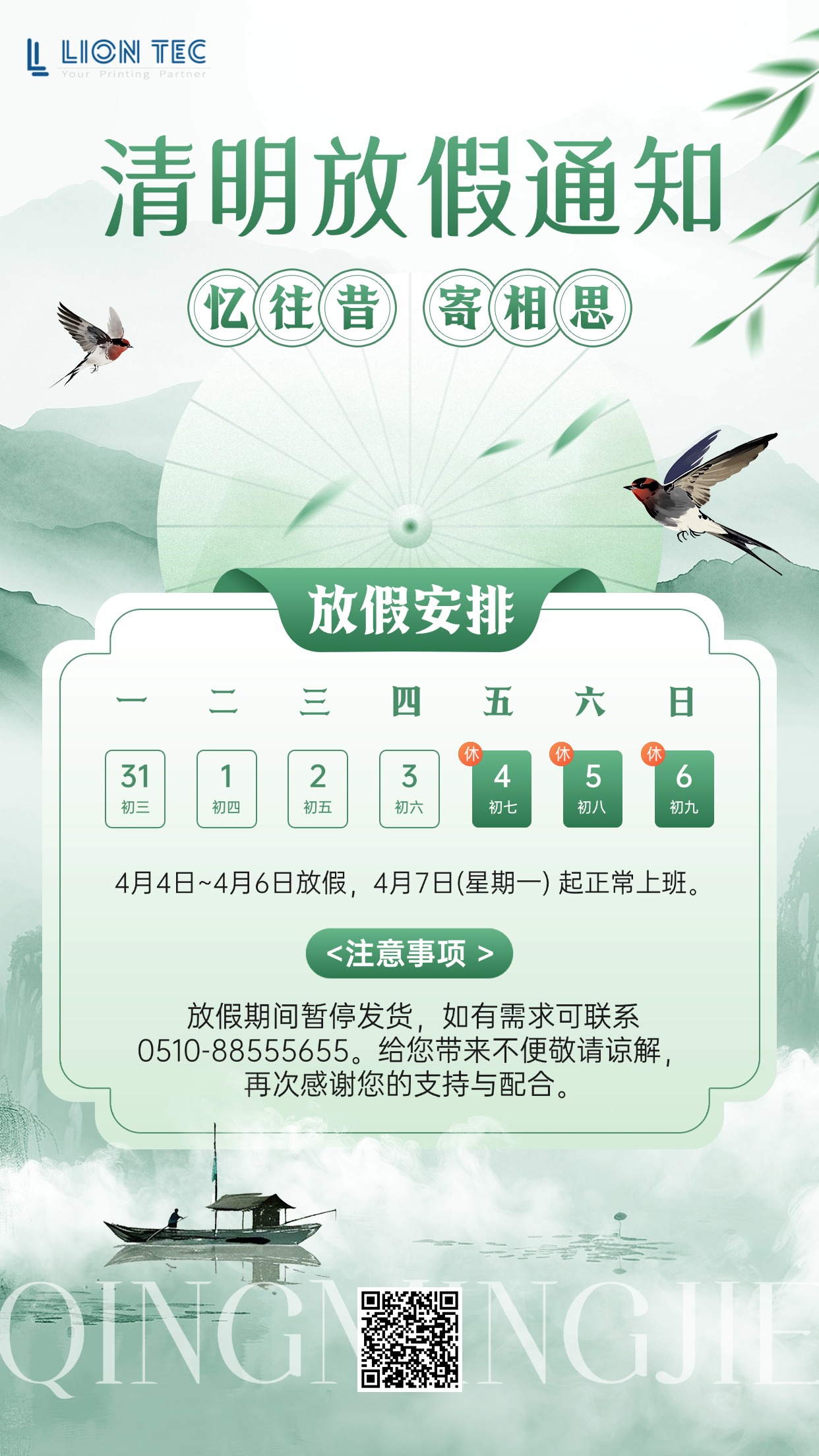 人間四月芳菲盡,春風落日寄哀思。清明,是慎終追遠的時節,是對親人的思念,更是文化的傳承。清明節即將到來,根據國家法定節假日規定,噴碼機廠家藍茵現將 2025 年清明節放假安排通知如下: