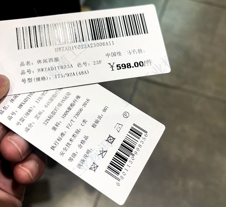 衣服白卡紙吊牌產品信息UV噴碼機噴印效果