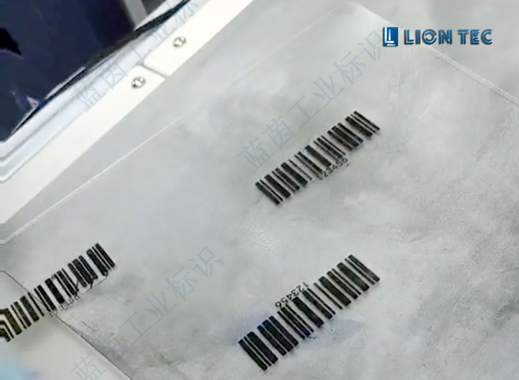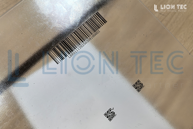 某光伏行業客戶在我司打樣的光伏玻璃面板,要求在玻璃表面噴印條形碼和數字,以下是通過UV噴碼機打樣的效果圖