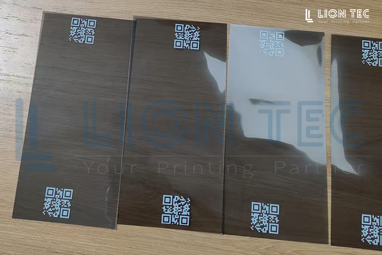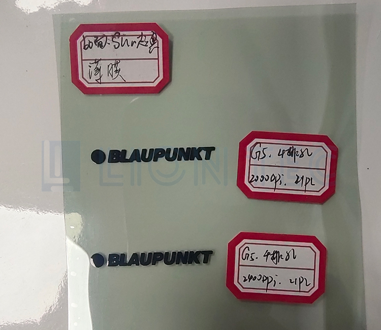 某上市公司車企的聚丙烯(PP)材質樣品汽車顯示屏膜通過藍茵uv噴碼機打樣的效果