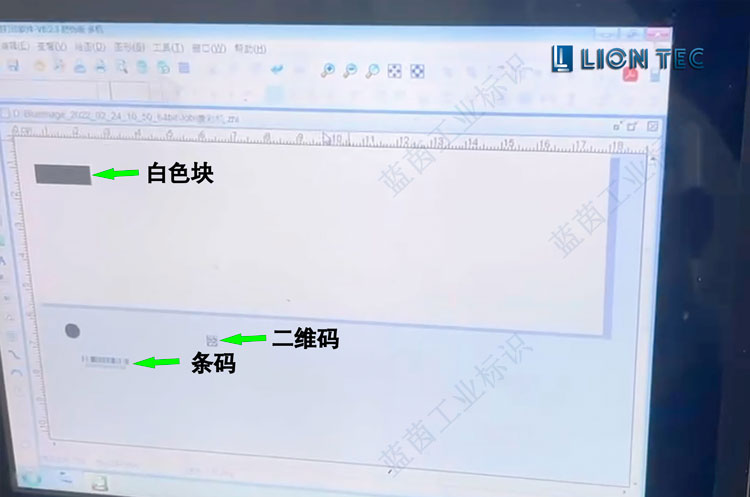 噴印流程如圖所示,要在采樣管側面先噴上方形的白墨色塊,噴印好之后再噴印上條碼,頂部噴印圓形白墨塊再噴二維碼,三個部分的噴印都是通過UV噴碼機完成
